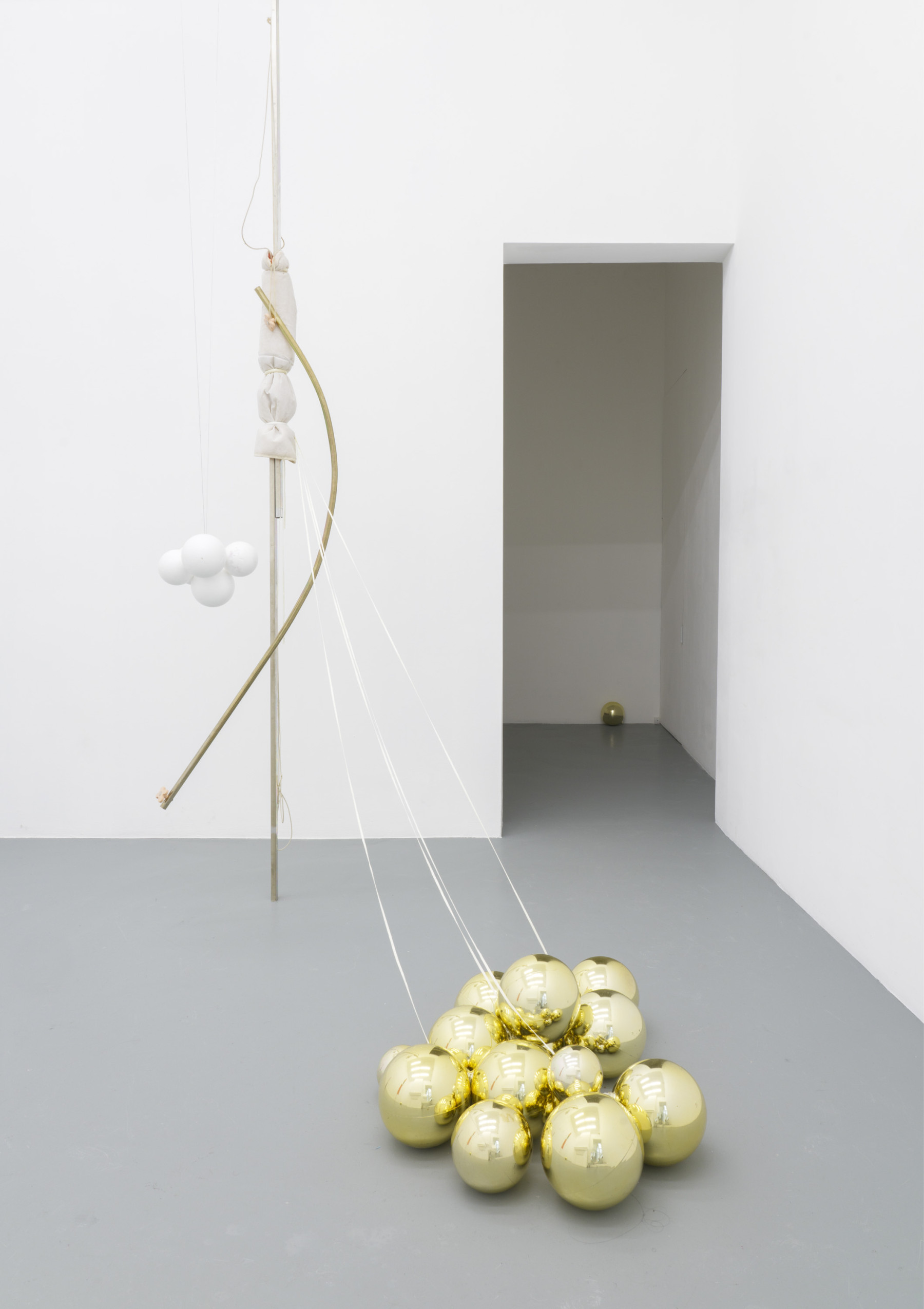 Par le hasard d’une rencontre opportune, de circonstances bienheureuses, par l’alchimie immédiate de certains corps ou le labeur de multiples tentatives, on assiste parfois à la magie de bons agencements. C’est qu’en dépit des calculs ou des apparences, une chose en ajuste parfois une autre, elle lui est à sa taille et lui va comme un gant. Je crois que c’est à cette première échelle — celle d’assemblages fortuits, d’un art du lien et du détail — que peut se- comprendre le travail de Nina Azoulay. Ses gestes empruntent autant à la minutie de l’orfèvre qu’à la débrouillardise de l’enfance ; ainsi par la simplicité d’un empilement, d’une perforation parfois, des objets supposément inadéquats s’affectent et se composent en sculptures — créant des apesanteurs par endroits, des lévitations par d’autres.